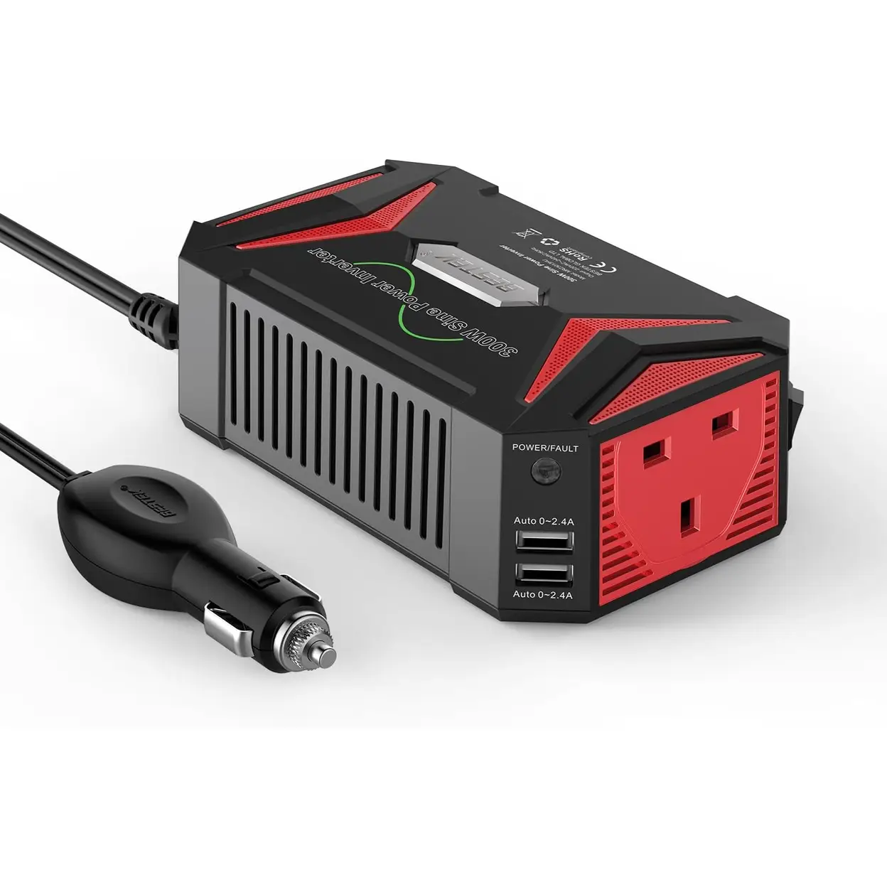 BESTEK 300W Pure Sine Wave Power Inverter 12V to 240V 230V with 4.8A Dual Smart USB Ports Car Adapter Charge Your Laptop iPad iPhone Tablet Consoles & More
