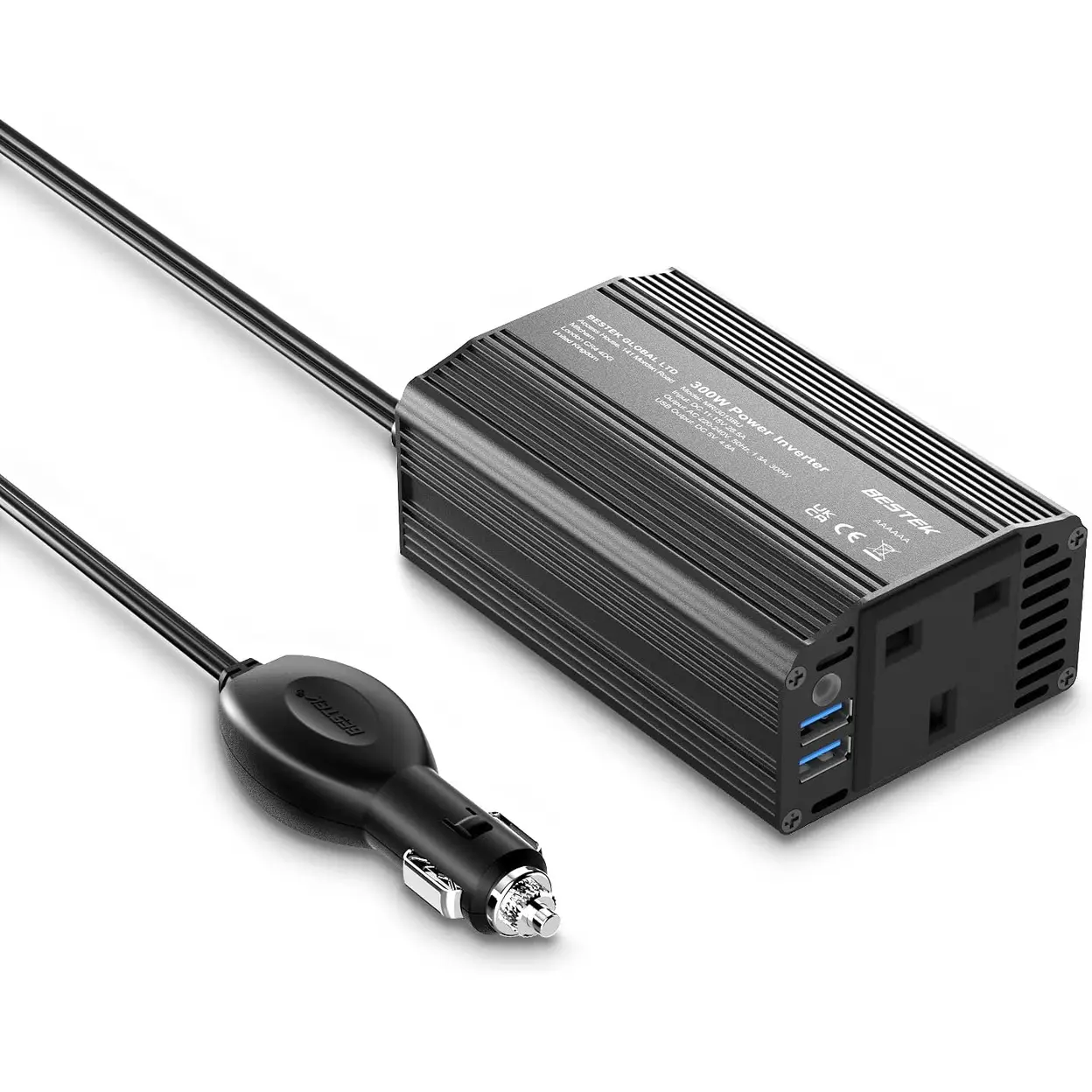 BESTEK Power Inverters 12V to 240V 230V 300W Inverter Transformer Car Charger Lighter Adapter with 3 Pin Plug and Dual USB Ports for Your Laptop, iPad, iPhone, Tablet, Consoles & More (Black)
