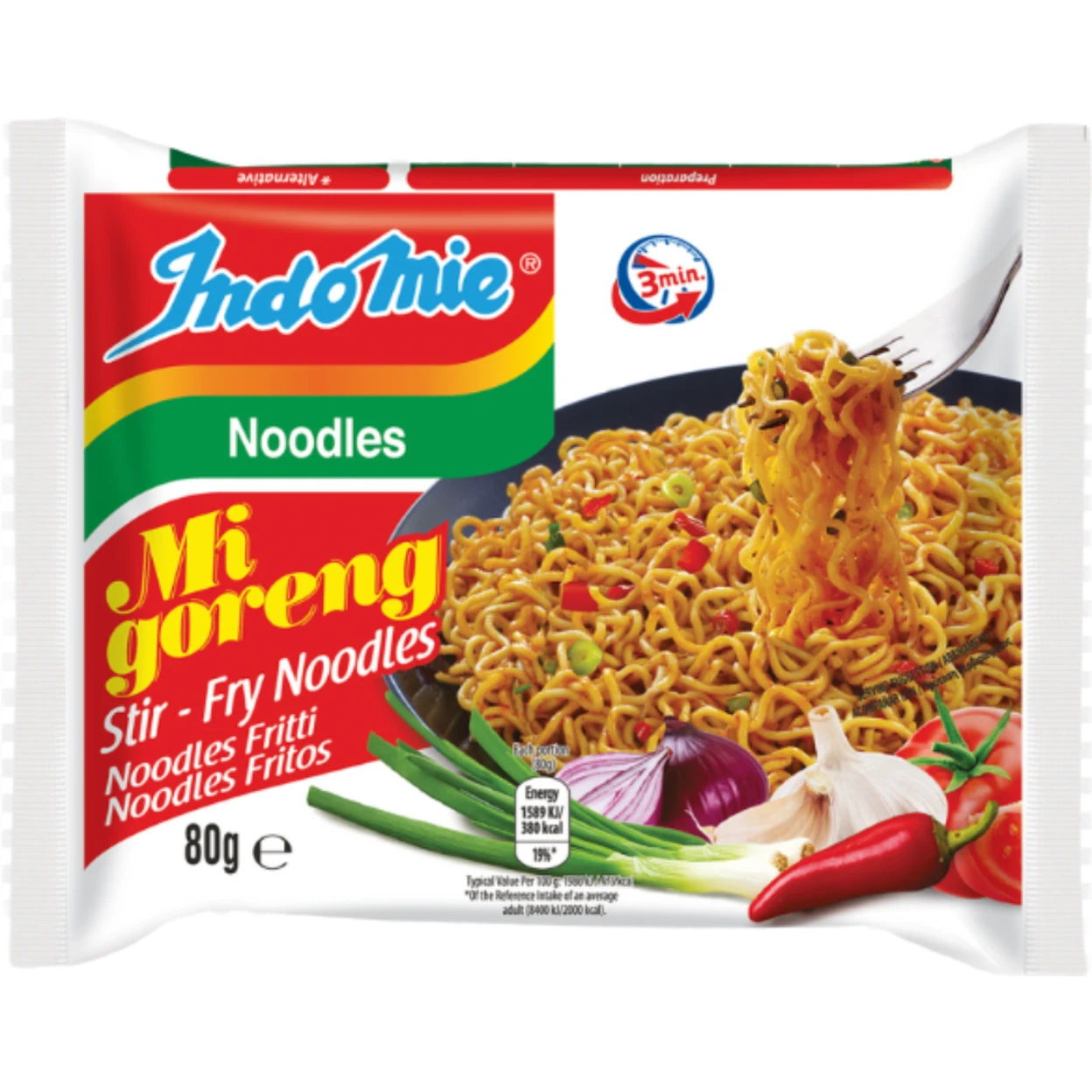Indomie Mi Goreng Original delivers the quick and delicious taste of classic Indonesian dry noodles. The firm wheat noodles are coated in a savory, slightly sweet, and aromatic sauce, enhanced with crispy fried onions for added crunch and flavor. This convenient single-serve pack offers a flavorful and satisfying meal, perfect for a quick lunch, dinner, or snack.