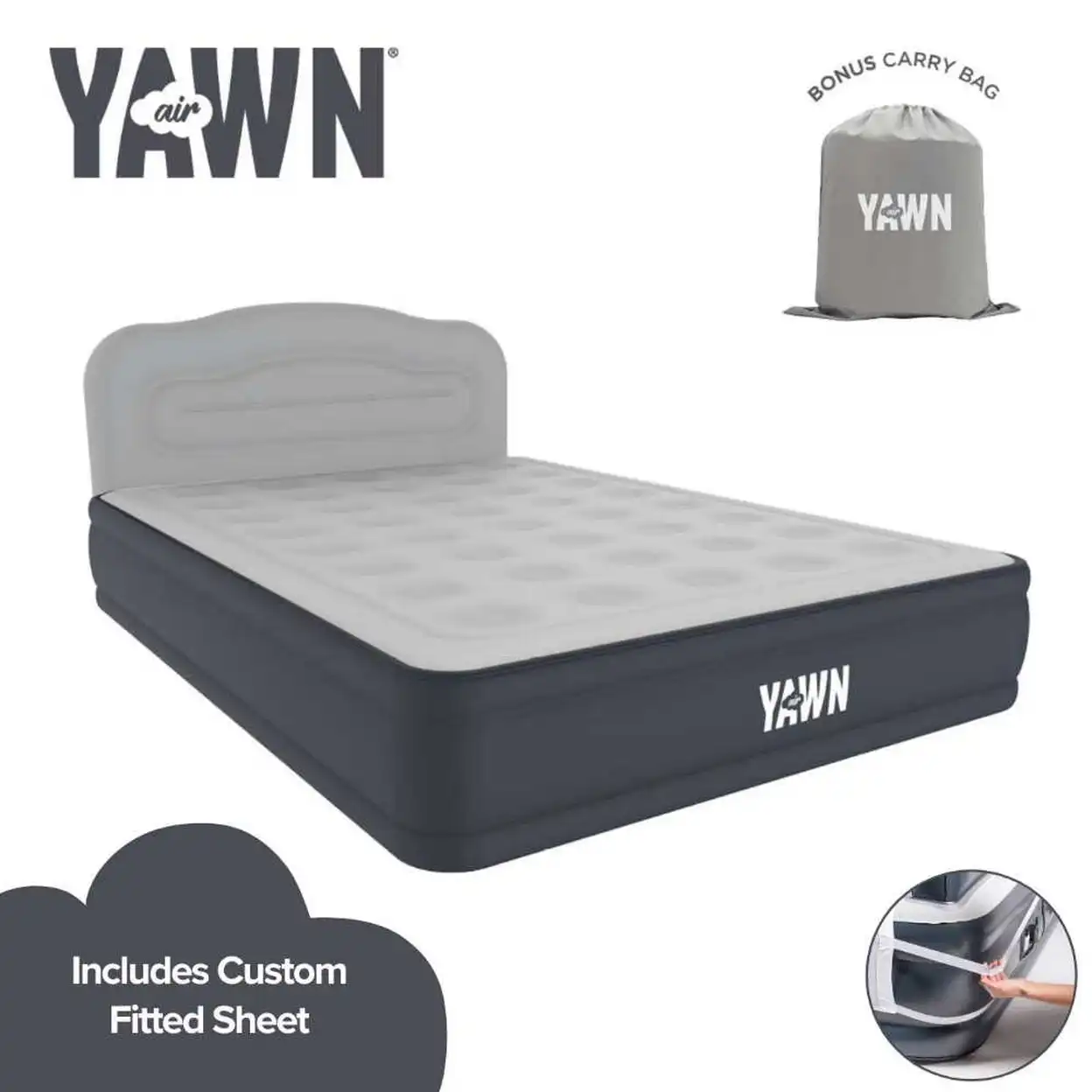 Yawn Air Bed Deluxe with Headboard & Fitted Sheet Self Inflating King